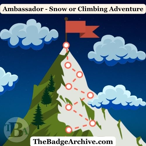 NOTE: This badge can be earned twice. Some will do so and put them on the uniform with the snow adventure image on top when they earn the badge doing the snow activities, and put them on the uniform with the climbing adventure image on top when they earn the badge doing the climb activities.