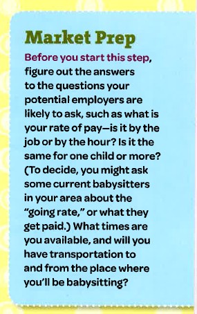 - Attend a babysitting training course OR interview 5 moms or professionals who watch children.