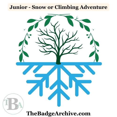NOTE: This badge can be earned twice. Some will do so and put them on the uniform with the snow adventure image on top when they earn the badge doing the snow activities, and put them on the uniform with the climbing adventure image on top when they earn the badge doing the climb activities.
