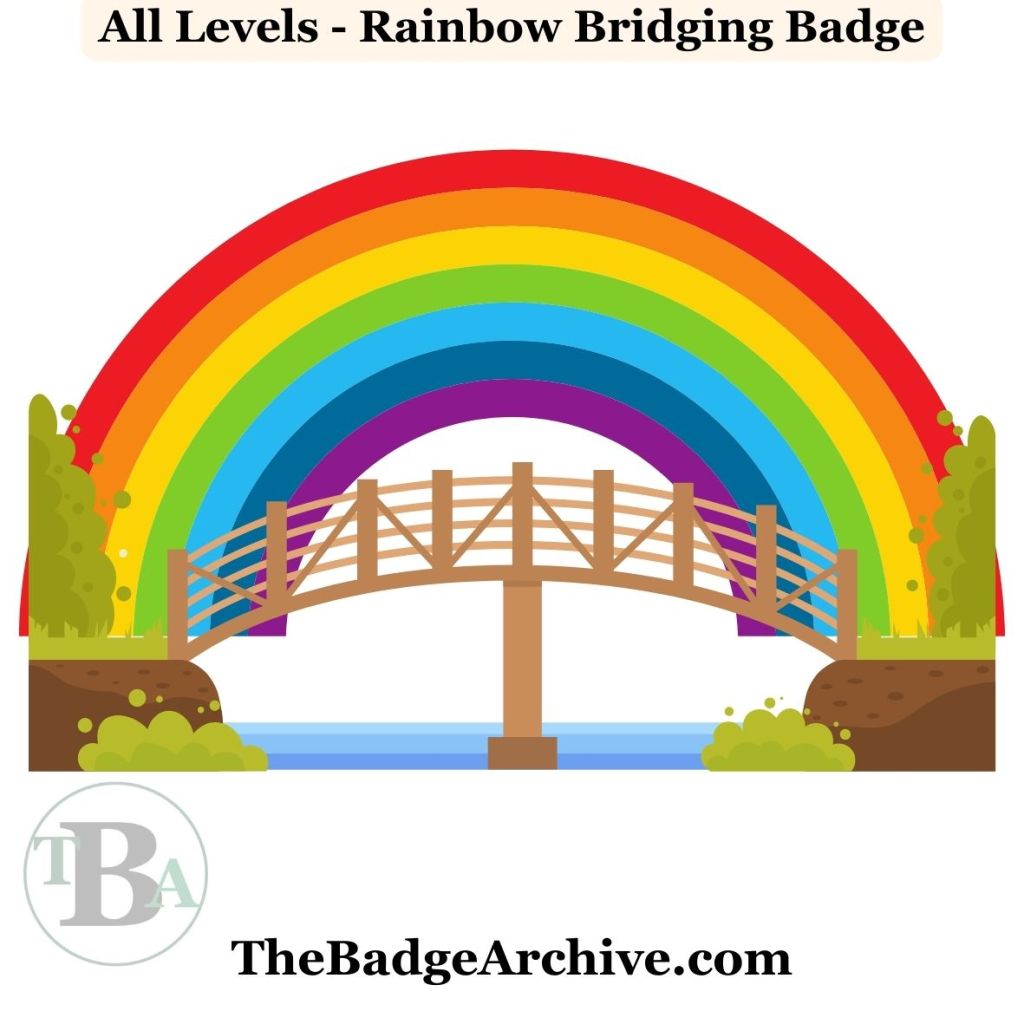 Rainbow Bridge badges mark important transitions between Girl Scout levels and are designed to be displayed proudly. All levels can wear these badges on their uniforms, with Daisies the exception, as they haven’t bridged from a previous level yet.