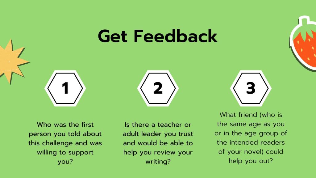 For the next three days, you need to focus on having other people read your writing. It can be hard to, especially if you aren’t done or feel like you could have done better. Don’t worry! You aren’t giving these to the local bully. You are giving these to friends and family, or mentors that you trust. Trust them.