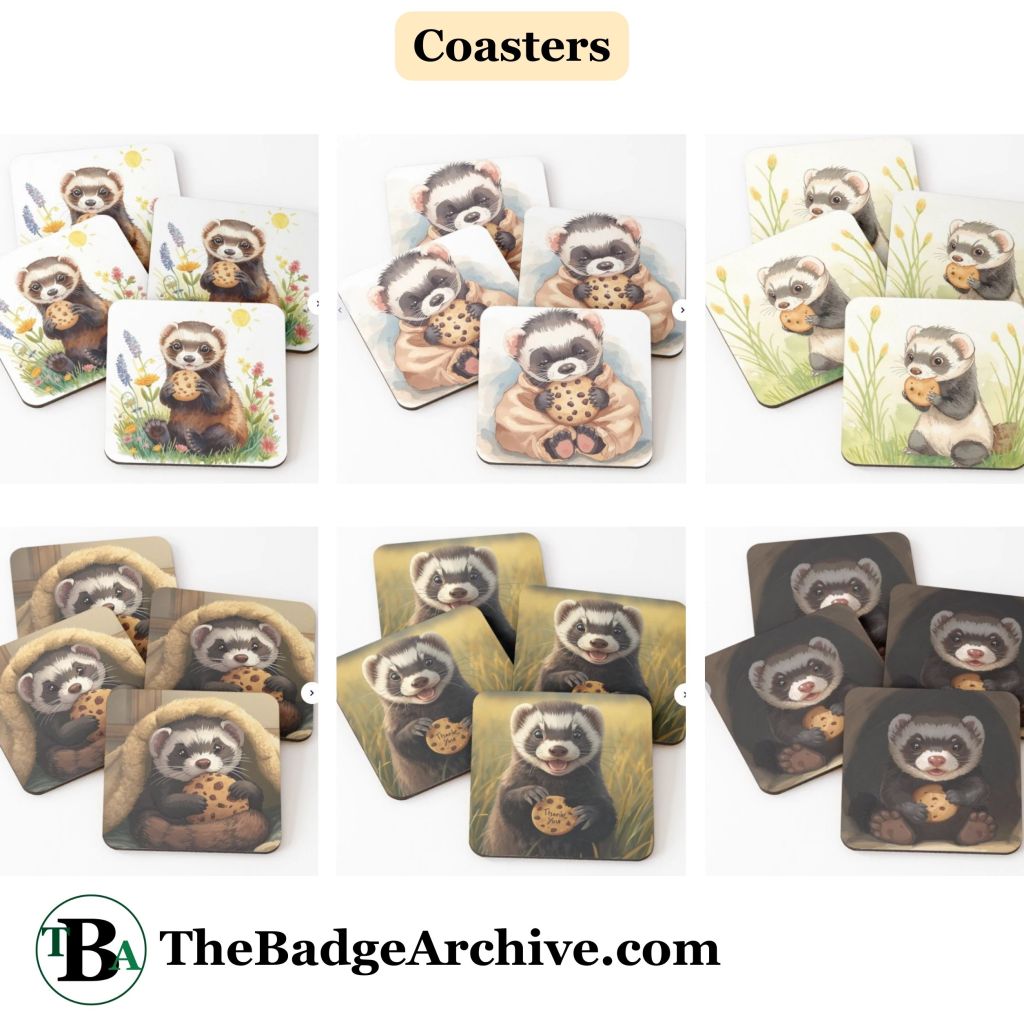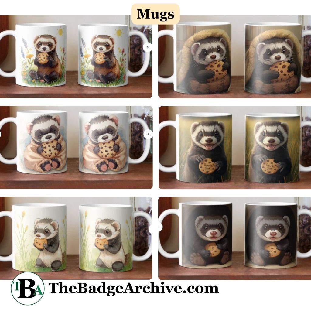 All six ferret designs are available across these products, giving you plenty of options while directly supporting The Badge Archive.