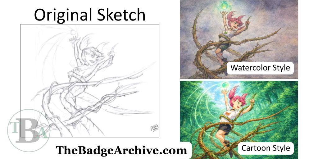 The illustrations that represent each badge are made exclusively for The Badge Archive by our founder, Tia K. Our process utilizes several professional tools and methods: