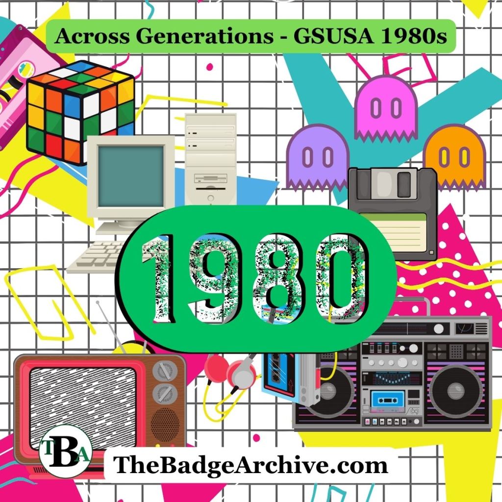 A decade of bold redesigns, expanded access, and a fresh take on what it meant to be a Girl Scout. The 1980s ushered in one of the most significant program overhauls in Girl Scout history. In 1980, GSUSA retired the long-standing Proficiency Badge system and introduced Worlds to Explore, a new badge structure organized into five thematic “worlds”: The Arts, The Out-of-Doors, People, Today and Tomorrow, and Well-Being. Each world had its own color-coded border and encouraged girls to explore topics through hands-on, interest-based learning.