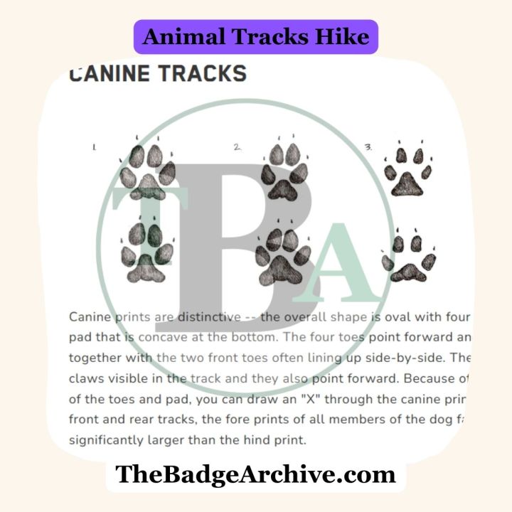 Activity Description: Scouts go on a hike to find and identify animal tracks, then guess which animals made them and explore how those animals live.