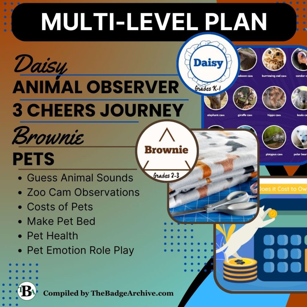 Earns Daisy Animal Observer, Daisy 3 Cheers Red Robin Award (Learn how to take care of animals by yourself), AND Brownie Pets. (Note: Daisy troops still need to do more to earn the other 2 parts of the 3 Cheers Journey).