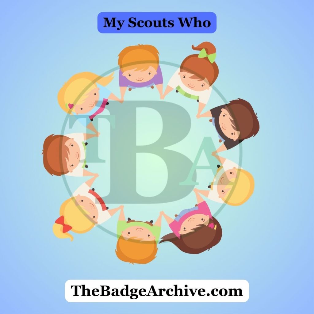 - The leader stands in the middle of the circle and says, “My Scouts who…” followed by something about themselves (e.g., “My Scouts who wear glasses”).