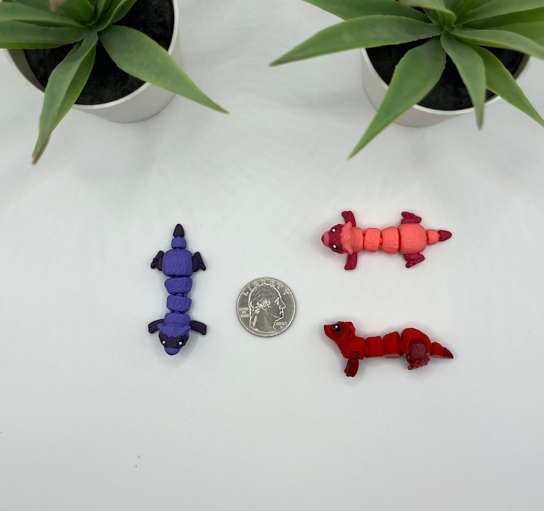 - Details: 3D printed plastic toys that wiggle.