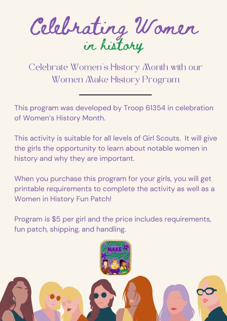 Order your patch and a set of requirements for Troop 61354’s Women Make History!